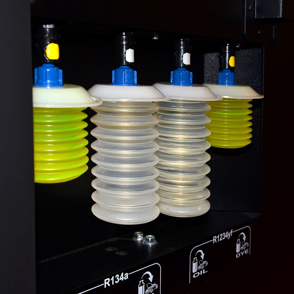 4 отдельные линии для масла и красителя с герметичными и многоразовыми контейнерами.